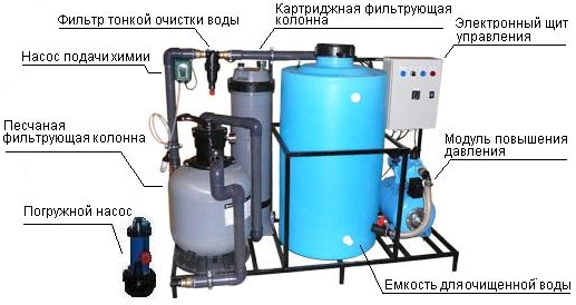 - Гравийно-песчаная фильтрующая колонна с системой обратной промывки (1 шт).